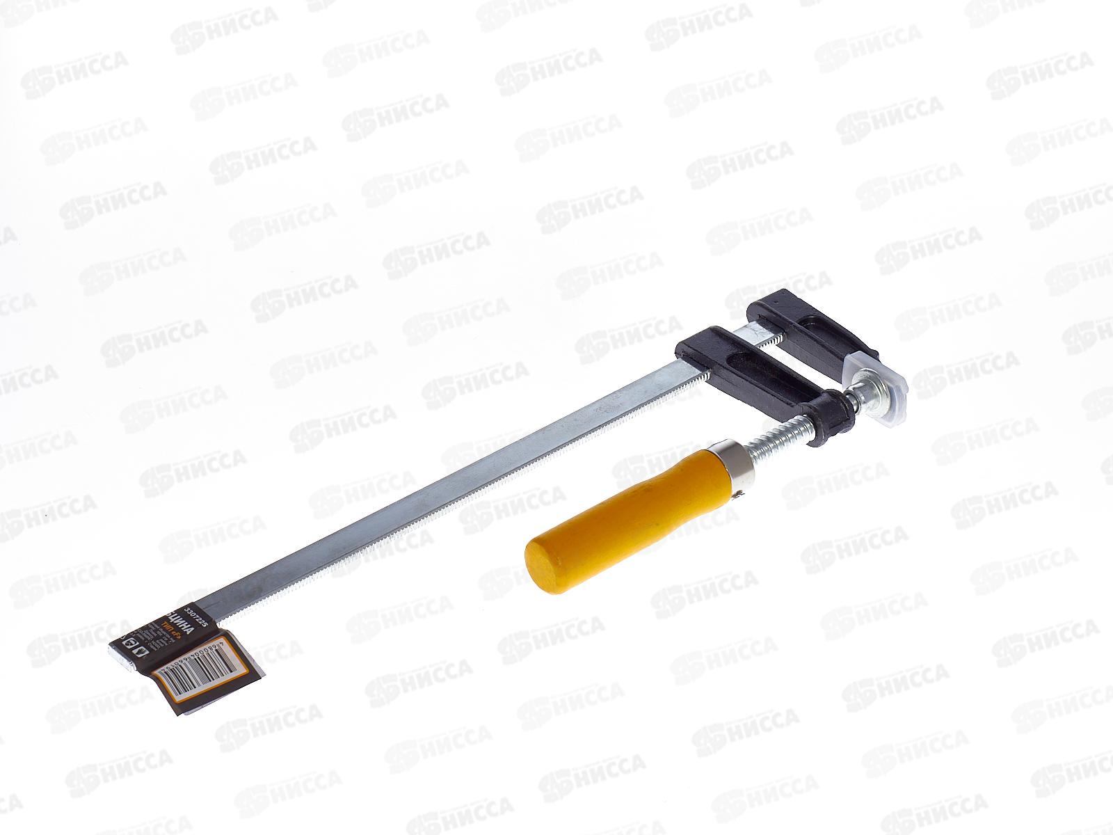 Струбцина (Корвус) F-образная, 250х50мм. Столярная струбцина Korvus практична и универсальна в использовании, отлично подходит для столярных работ. Значительно упрощает крепление обрабатываемых деталей к столу, а также правильную сборку изделия. Имеет стальную направляющую повышенной прочности с пазами, помогающими удерживать плечо в нужном положении. Назначение: предназначена для фиксации различных деталей в момент обработки, либо для плотного прижатия их друг к другу, например, при склеивании. Преимущества: надежная фиксация деталей (винтовая резьба с зажимом), удобна в работе (оснащена эргономичной деревянной рукояткой для лучшего захвата), произведена из высокопрочной стали, защищена от коррозии, малогабаритные размеры позволяют производить работы с мелкими деталями. Рекомендации: тип и размеры струбцины должны соответствовать виду выполняемых работ, после использования удалите излишки клея с поверхности инструмента, избегайте попадания влаги в механизм инструмента.