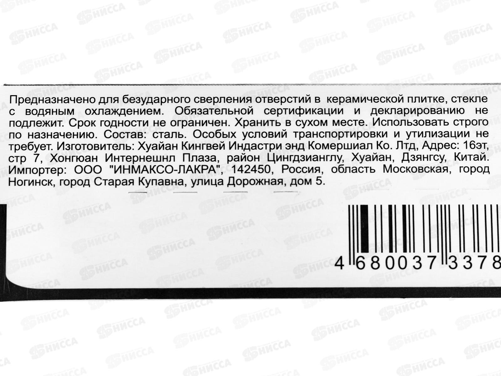 Сверло по кафелю и стеклу,крестовая пластина, D 4мм, шестигранный хвостовик, 2708532 *1/1000