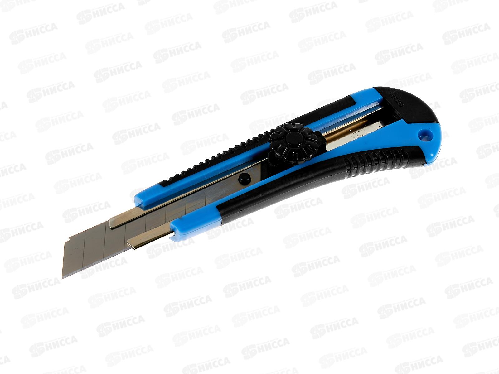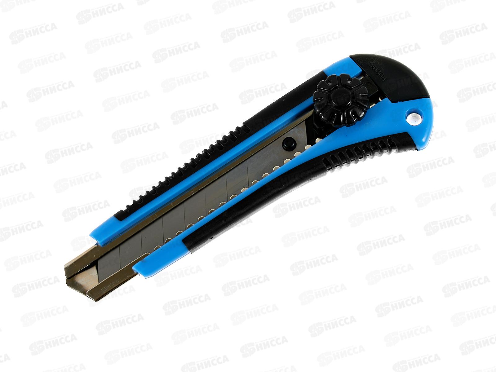 Нож широкий Профи twist-lock с сегментированным лезвием, с металлической ведомой. Применяется для резки бумаги, картона и других материалов, при разрезании которых требуются малые усилия. Имеет противоскользящий пластмассовый корпус с резиновыми накладками и металлическую направляющую, которая повышает надежность конструкции. Оснащен винтовым фиксатором, позволяющим быстро и надежно зафиксировать рабочую часть лезвия необходимой длины. Замена лезвия осуществляется вручную через хвостовую часть ножа.