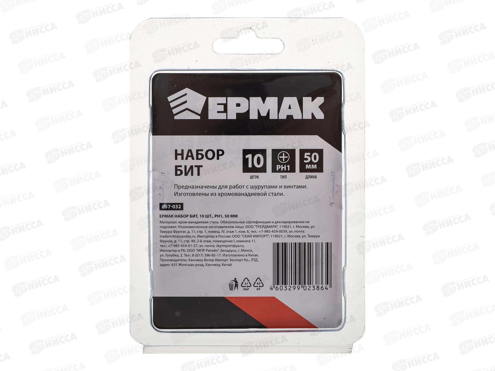 Набор бит РН1 50мм 10шт, ЕРМАК 657-032 г *20
