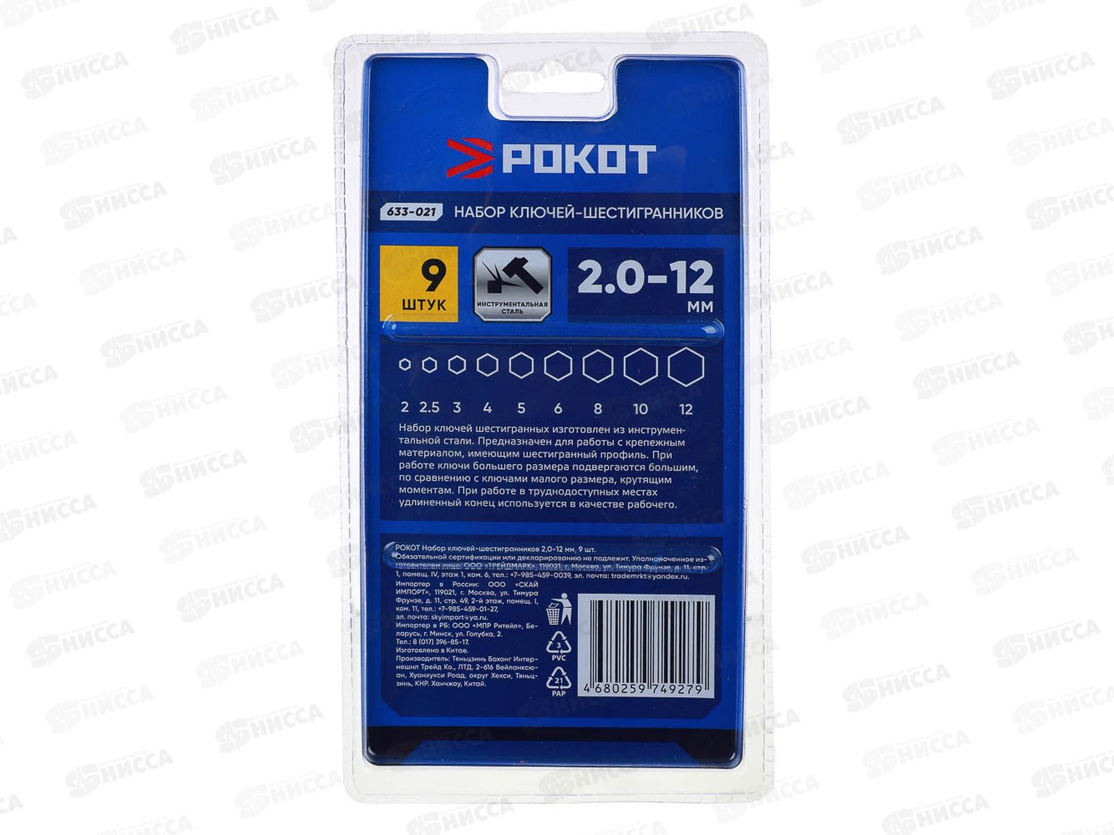 Набор ключей-шестигранников РОКОТ 2,0-12мм, 9шт 633-021 г