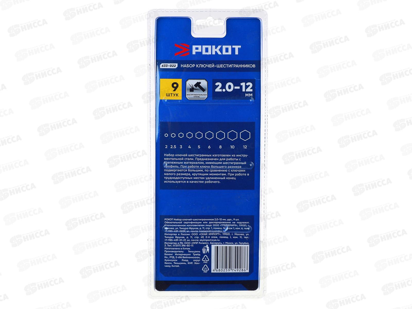 Набор ключей-шестигранников РОКОТ 2,0-12мм, удл 9шт 633-022 г