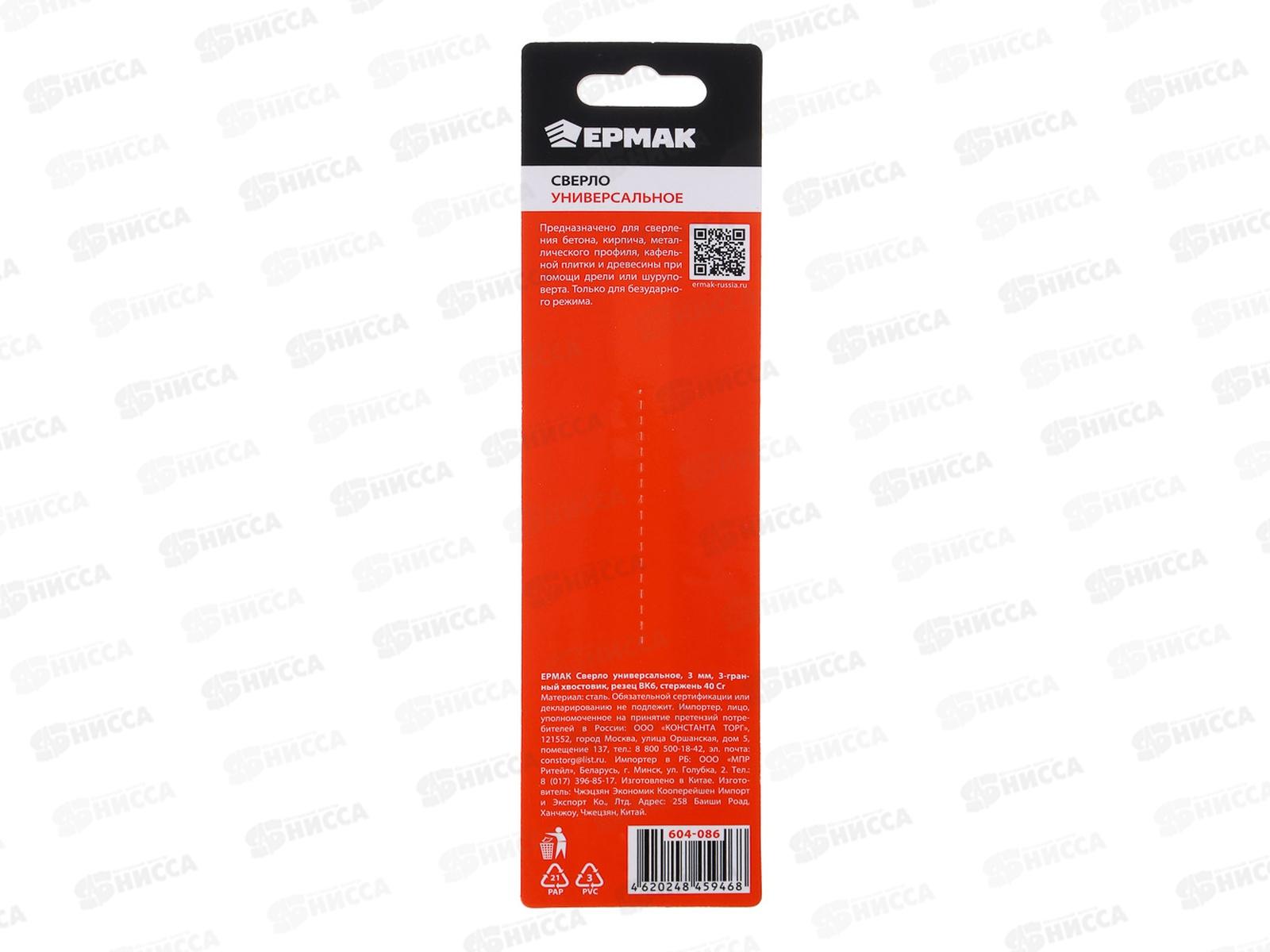 Сверло унив 4мм 3х гранный хвостик Ермак 604-086 г