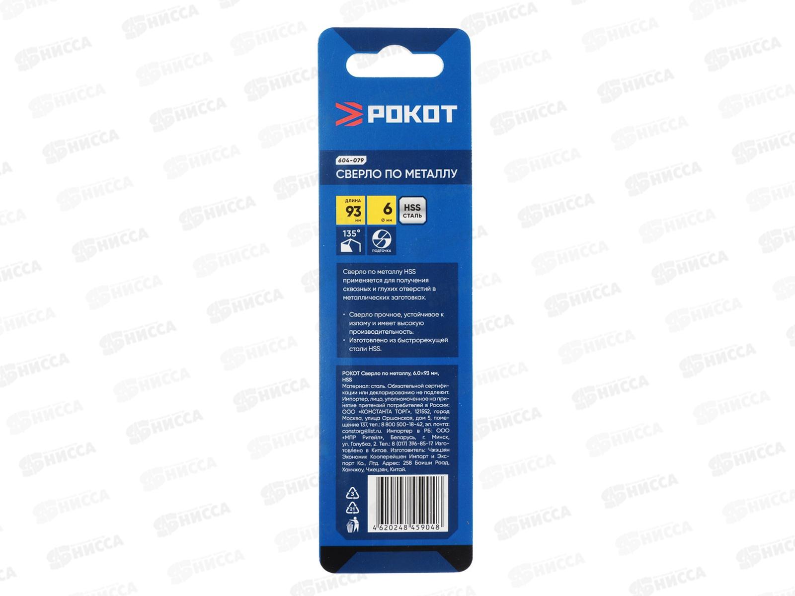 Сверло п/металлу 6*93мм РОКОТ 604-079 г