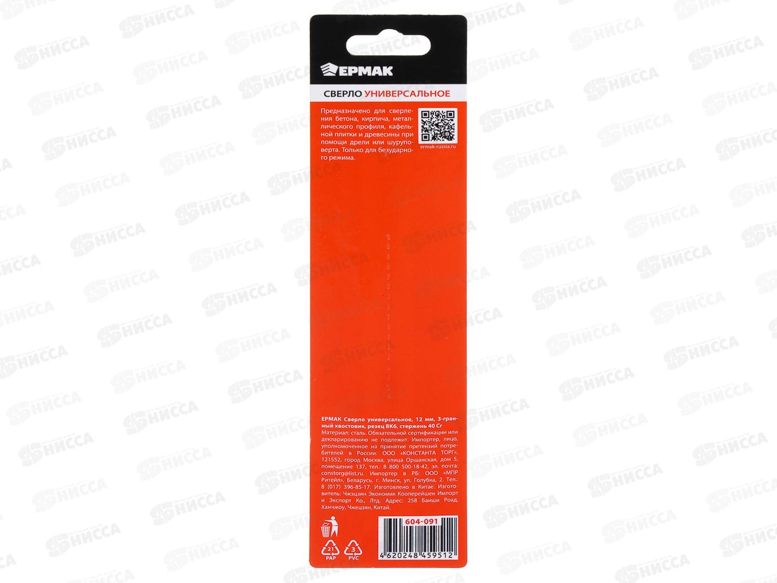 Сверло унив 12мм 3х гранный хвостик Ермак 604-091 г