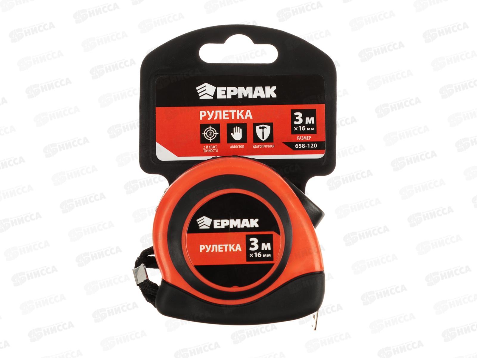 Рулетка 3м ЕРМАК "Автостоп", двухкомпонентный корпус 658-120 г *12