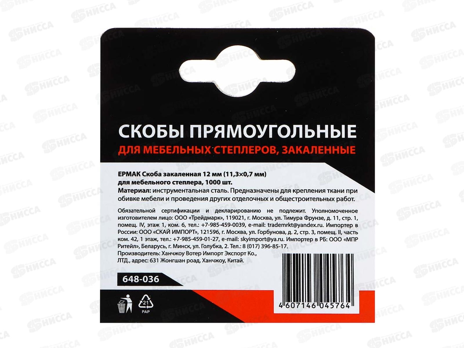 Скоба закаленная 12мм(11,3*0,7мм) для мебельного степлера 1000шт.648-036 г