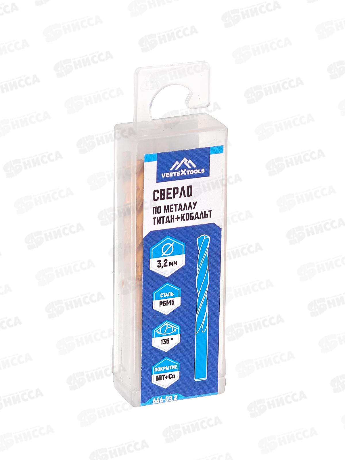 Сверло по металлу 3.2мм, титан+кобальт Р6М5, 666-03,2 *10