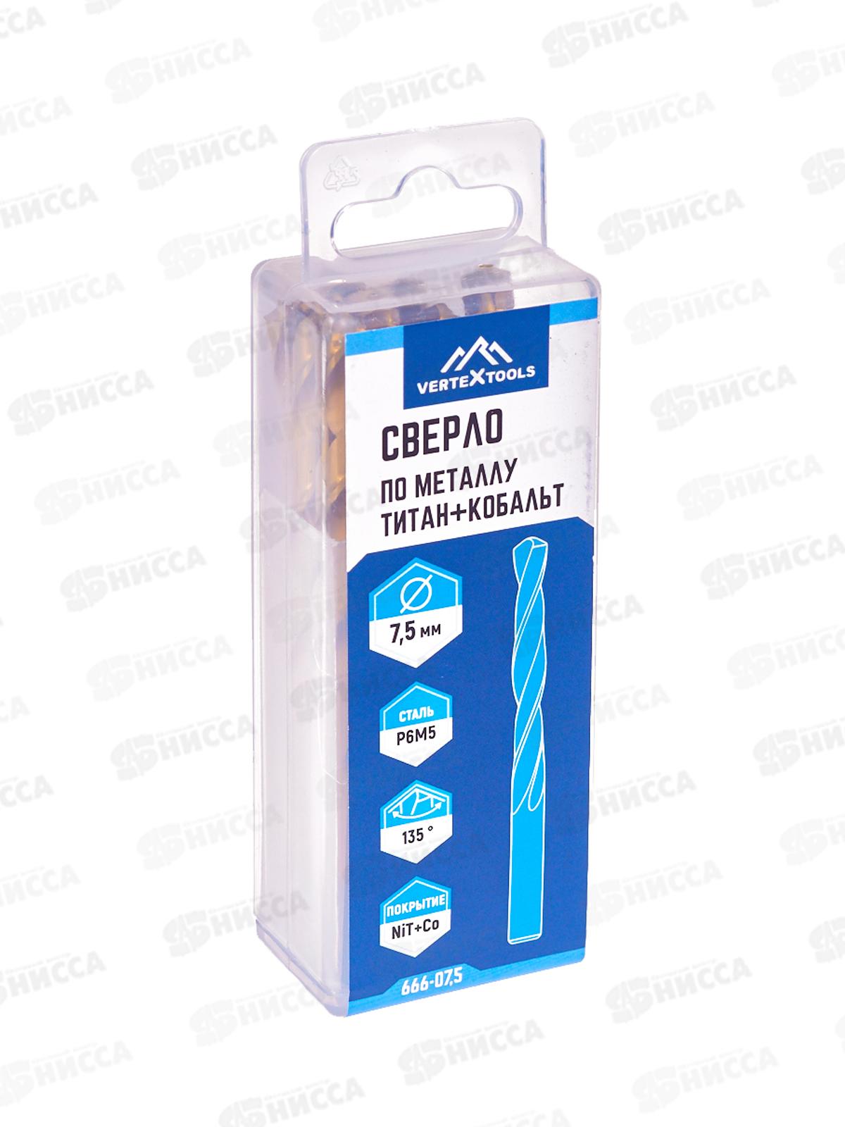 Сверло по металлу 7.5мм, титан+кобальт Р6М5, 666-07,5 *10