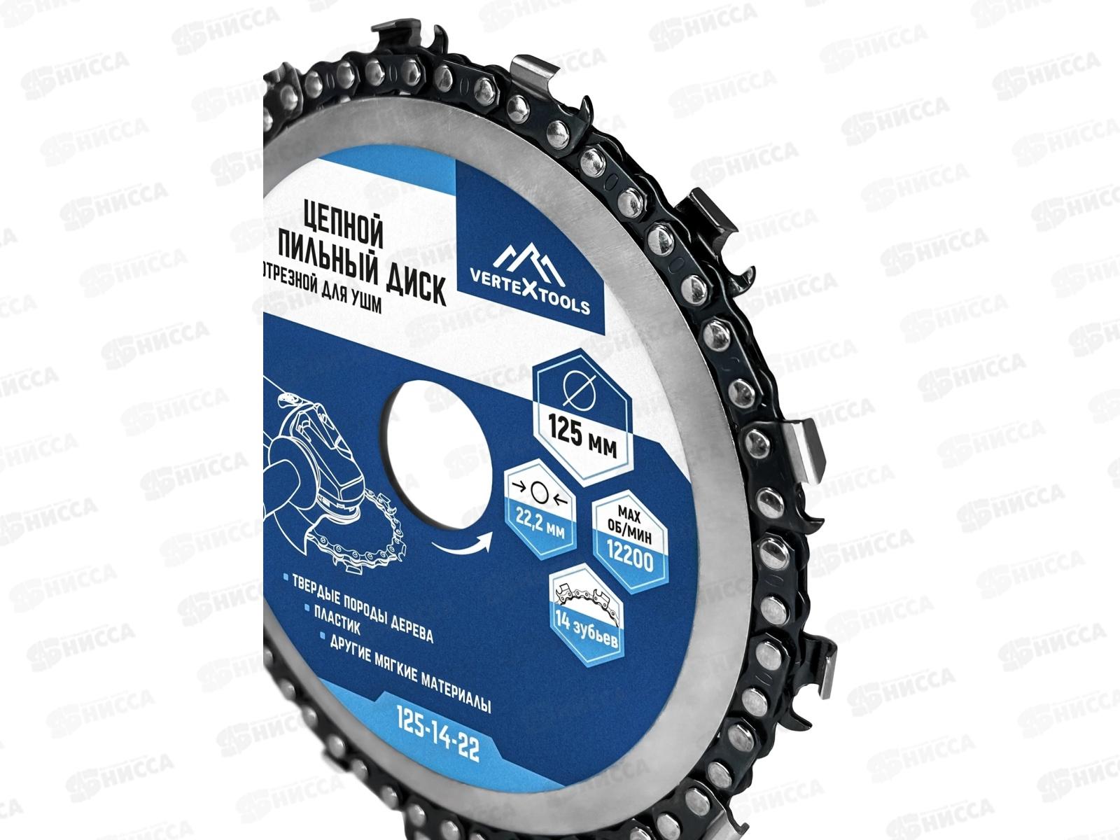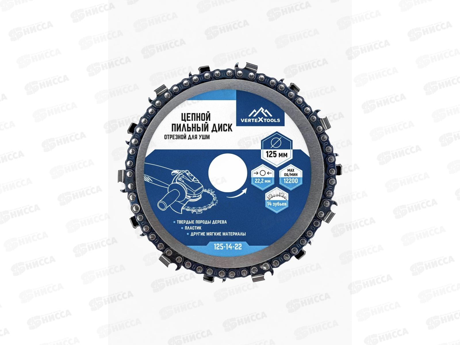 Цепной пильный диск отрезной для УШМ vertextools 125-14-22 предназначен для резки и обработки древесины и древесных материалов, фрезерования, моделирования. Подходит для резки твердых пород дерева, пластика и других мягких материалов.