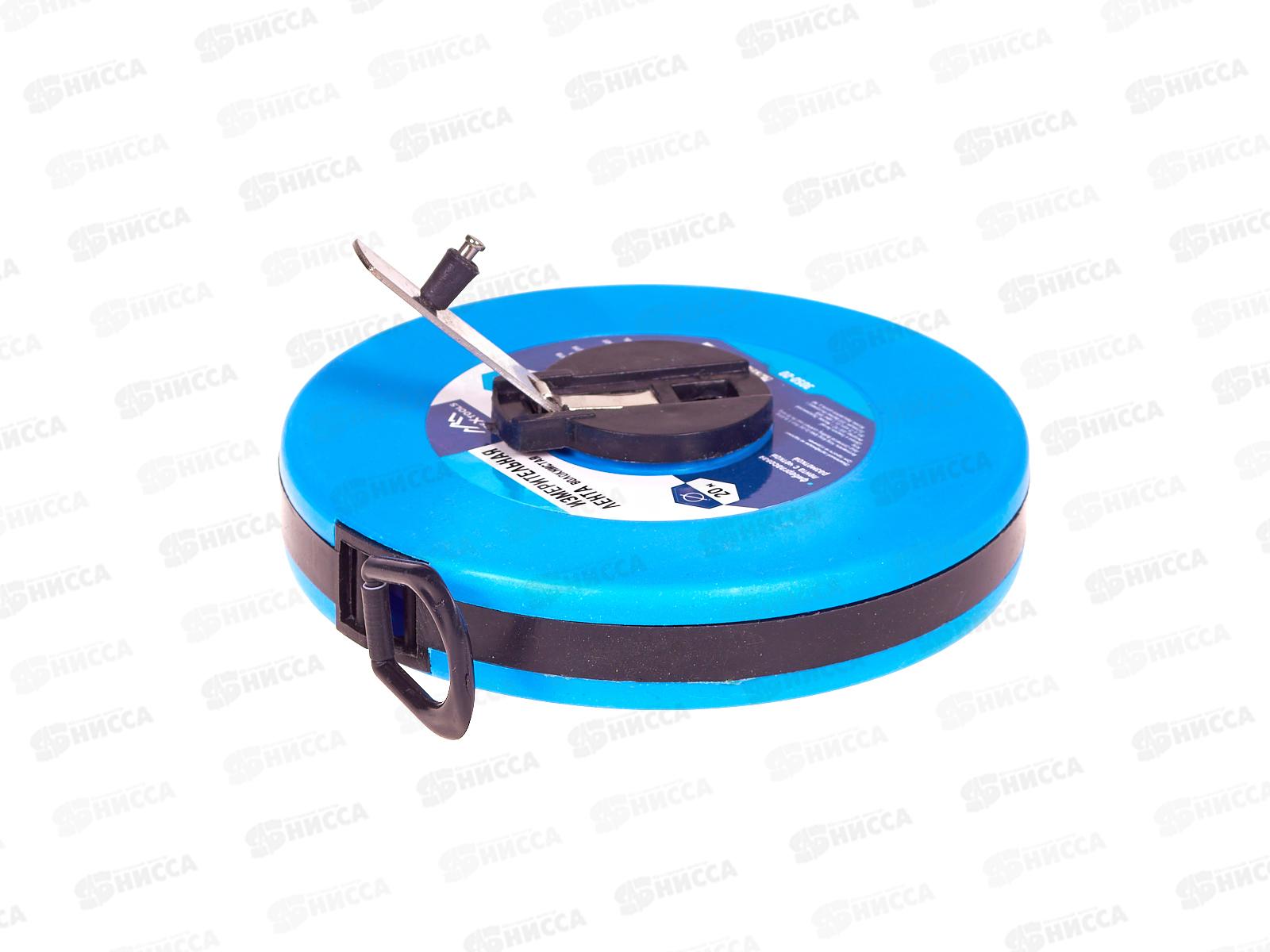 Прочная фибергласовая лента с четкой разметкой легко сворачивается внутрь пластикового корпуса, выполненного из ABS пластика. Для удобства работы одному человеку и точного измерения, на конце ленты установлено металлическое кольцо.