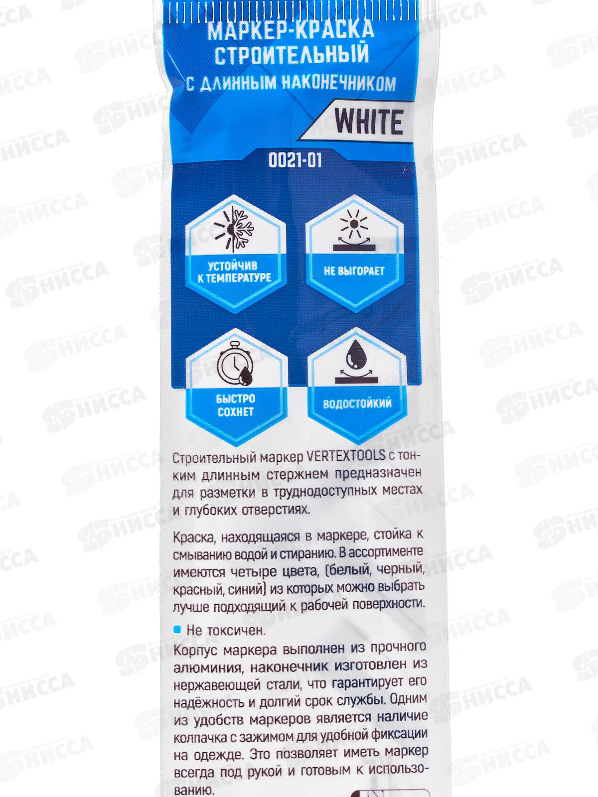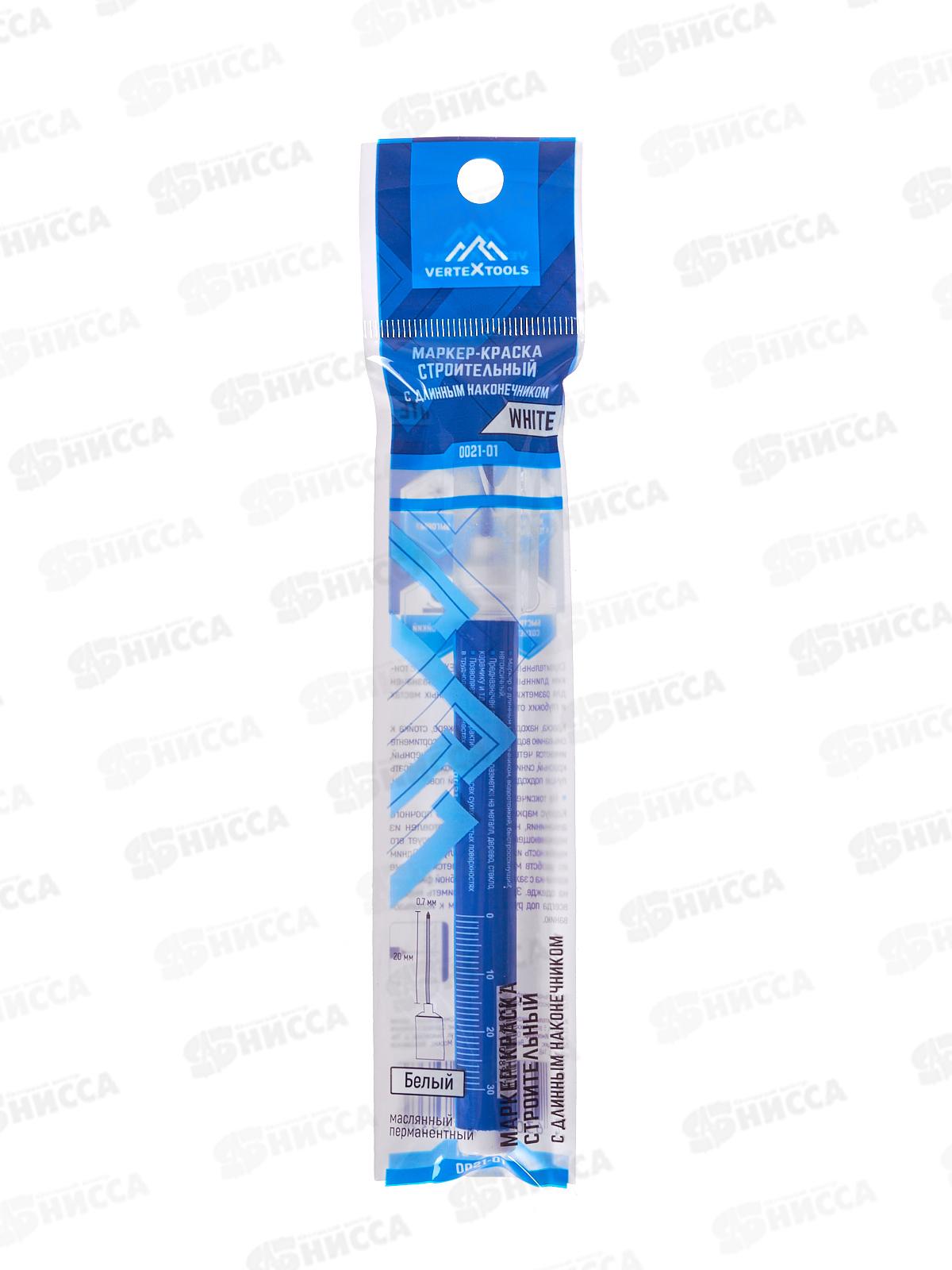Маркер краска строительный с длинным наконечником белый Vertextools *20