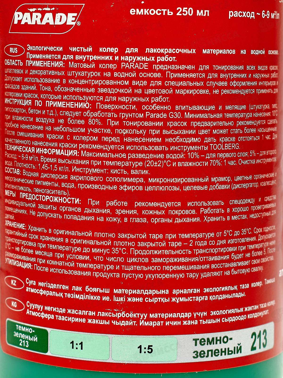 Колер PARADE 213 Темно-зеленый 0,25л ЛАКРА