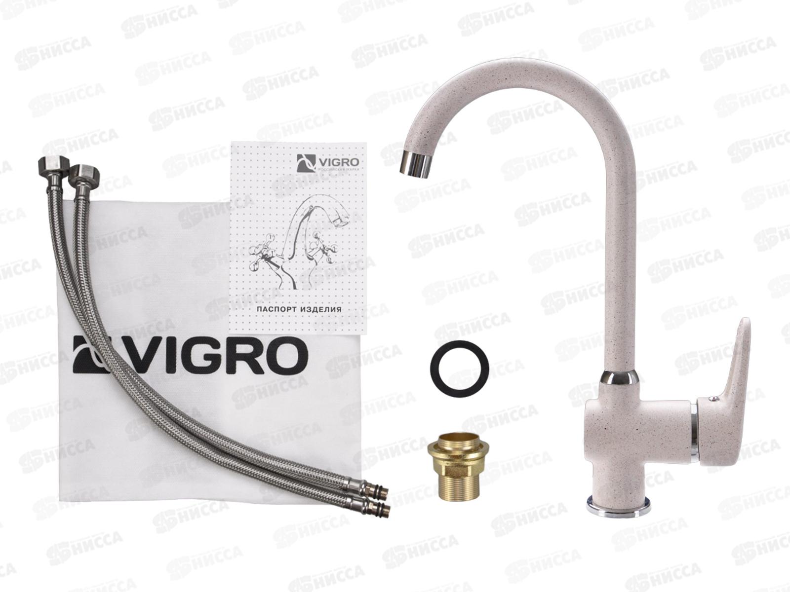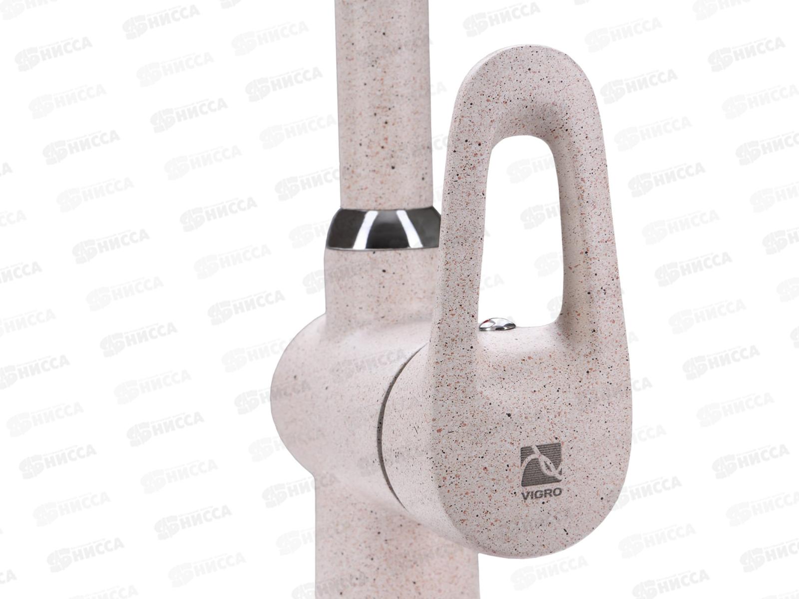 Смеситель для кухни VIGRO VG902 латте имеет современный дизайн, прост в установке и использовании. Стенки смесителя выполнены из высококачественной латуни - материала стойкого к коррозии, перепадам давления и температуры, что гарантирует долгий срок службы изделия. Длина излива подходит для большинства бытовых кухонных моек. поворотный оснащен аэратором, который существенно понижает уровень шума.