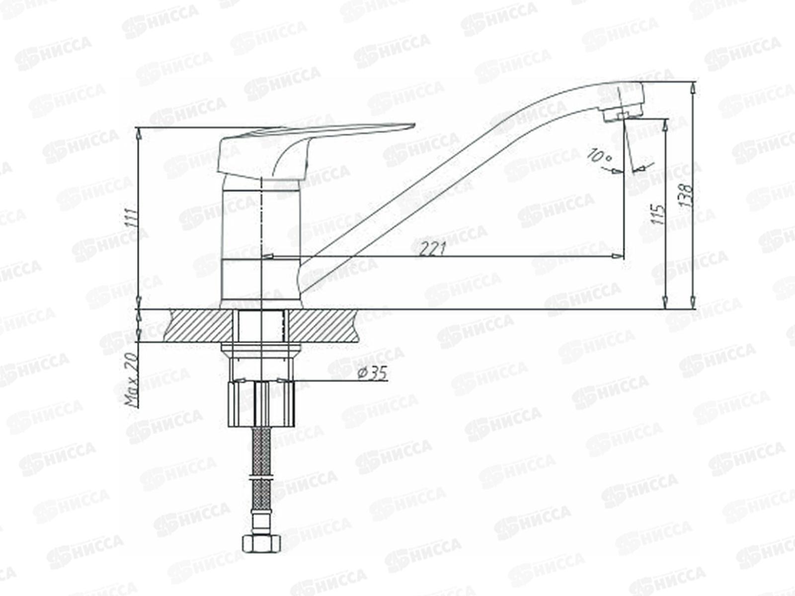 Комплектация: смеситель, гибкая подводка, крепеж, аэратор