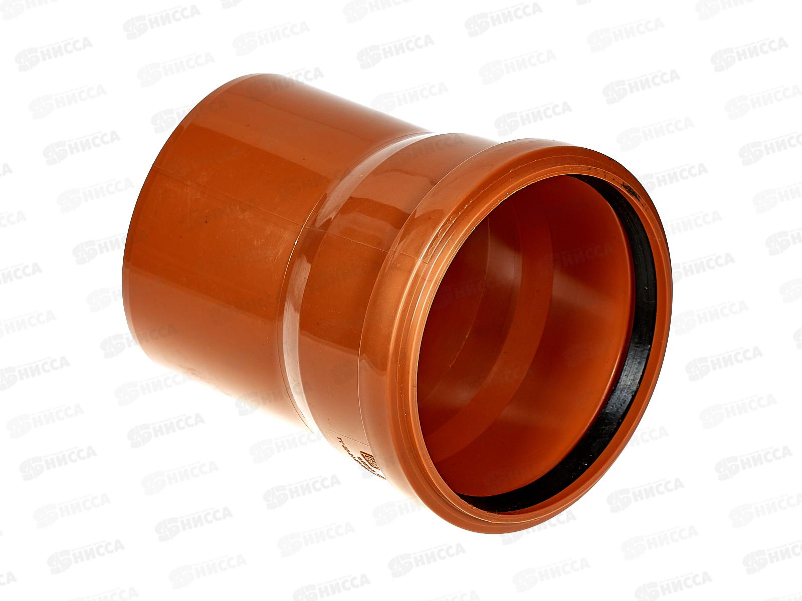 Отвод канализационный 15 градусов DN 110 для наружной канализации - канализационный фитинг, изготовленный из полипропилена и сополимеров пропилена. Применяется для систем хозяйственно-бытовой канализации зданий при максимальной температуре постоянных стоков 80?С и кратковременных (в течение 1 мин.) стоков с температурой до 95?С при максимальном их расходе 30 л/мин. Монтаж желательно производить с применением специальной силиконовой смазки.