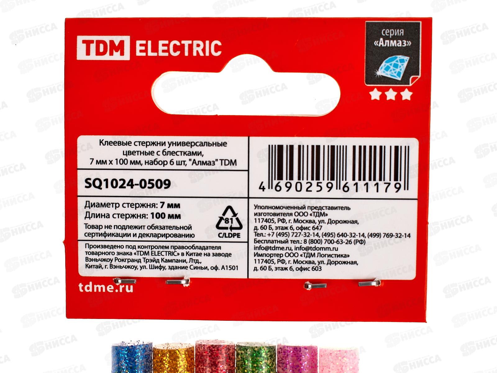Клеевые стержни TDM 7мм х 100мм, 6шт цветные с блестками, Алмаз 0509 *200