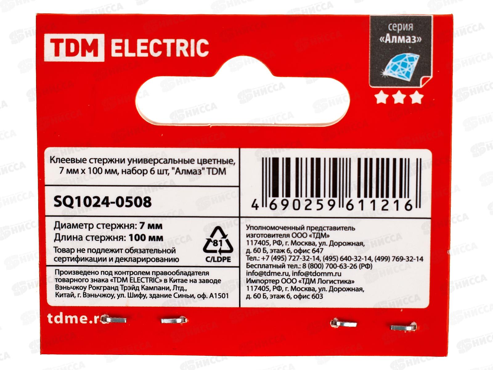 Клеевые стержни TDM 7мм х 100мм, 6шт цветные, Алмаз 0508 *200
