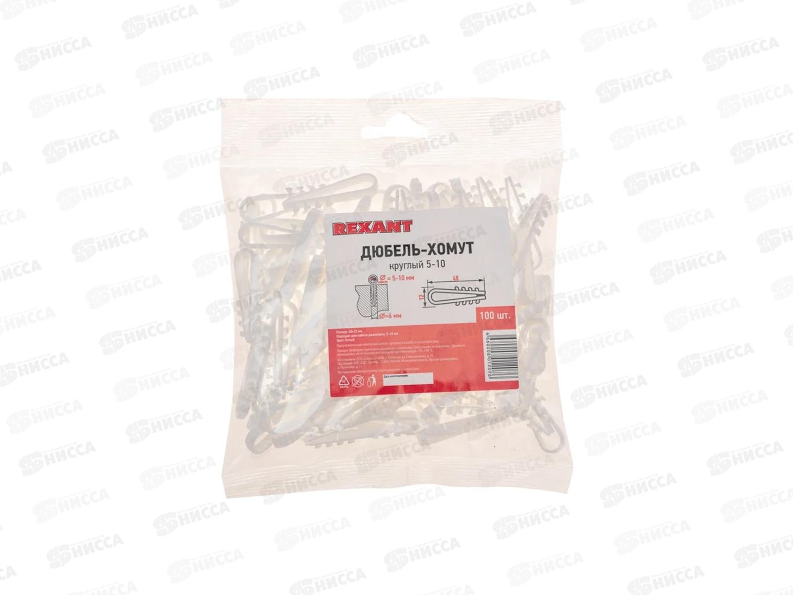 Дюбель-хомут нейлоновый Rexant 5-10мм, круглый белый,100шт, 07-4501