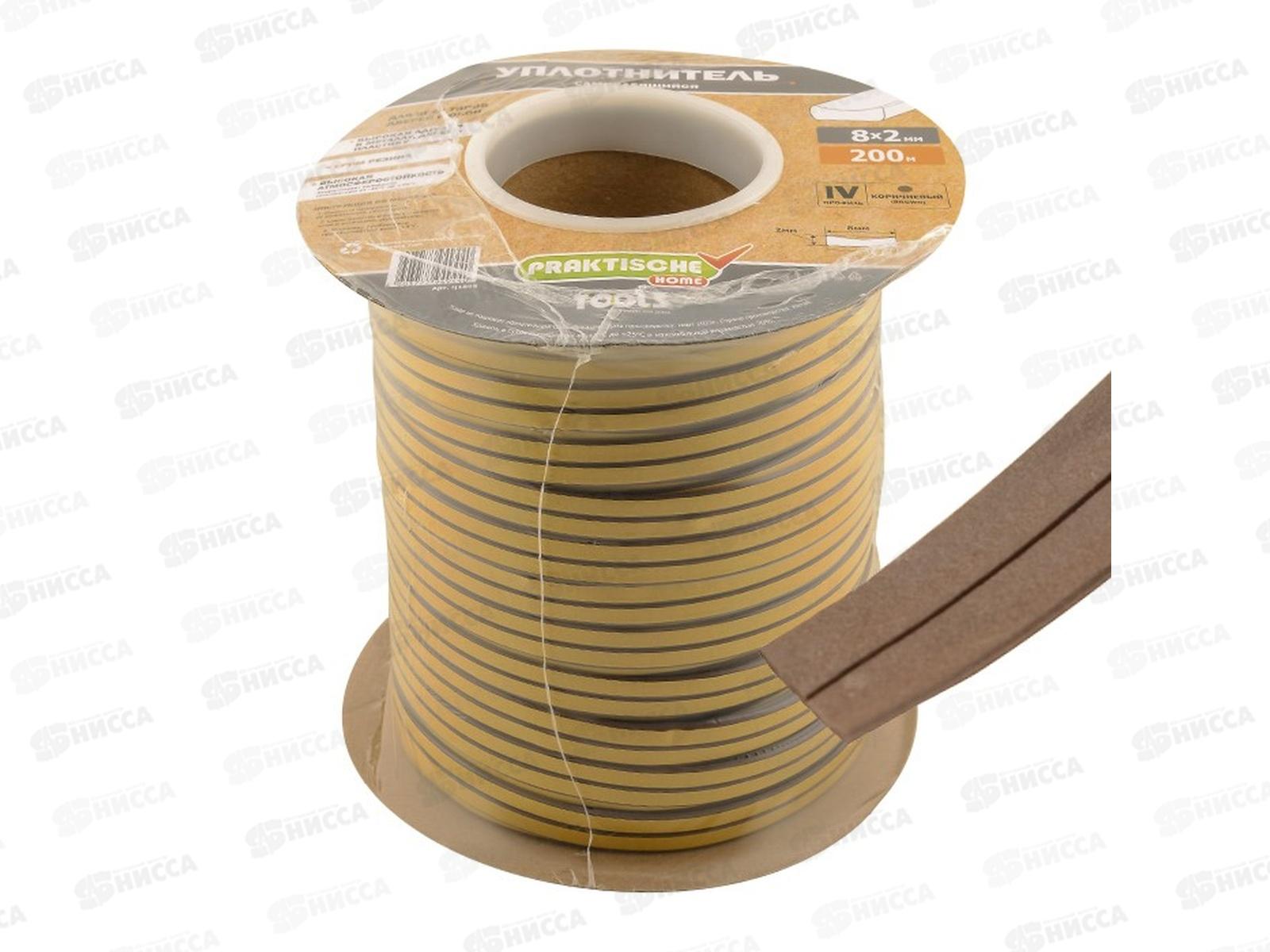 Уплотнитель самоклеящийся PRAKTISCHE 8х2мм IV-200м (коричневый) Ц1895