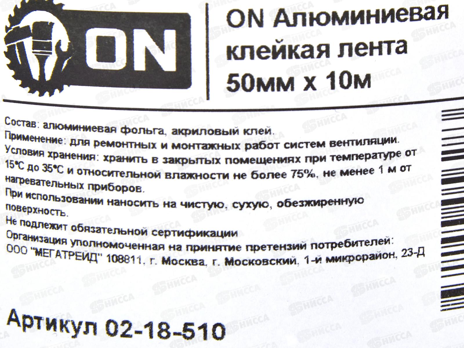 Скотч алюминиевый 50*10м ON, 02-18-510 *6/36