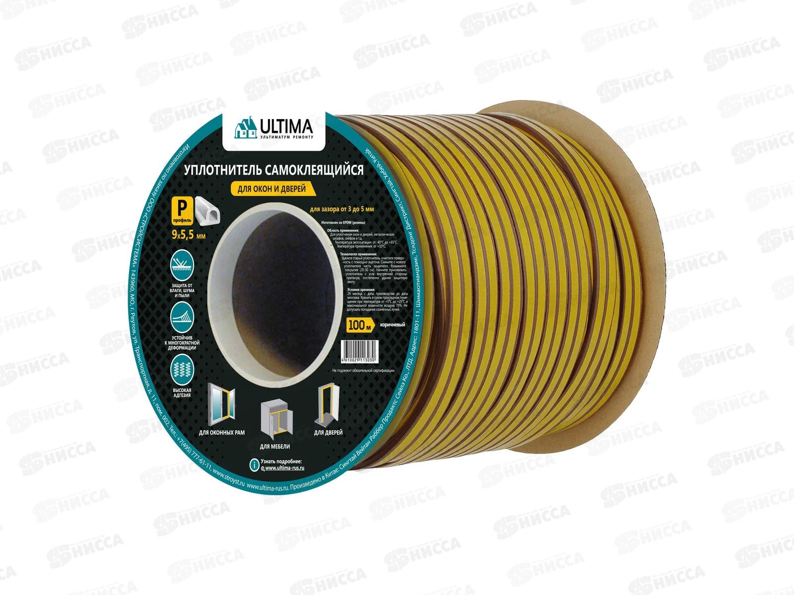 Уплотнитель самоклеящийся ULTIMA 9*5,5мм P-100м (коричневый) *6