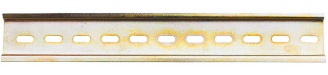 Din-рейка 225 мм, покрытие Цинк желтый – предназначена для крепления на ней, различных элементов модульного оборудования, электрических автоматов, УЗО и т.д. Цинковое покрытие – декоративно-защитное покрытие, которое предохраняет металл от коррозии и предает поверхности изделия блестящий оттенок.
