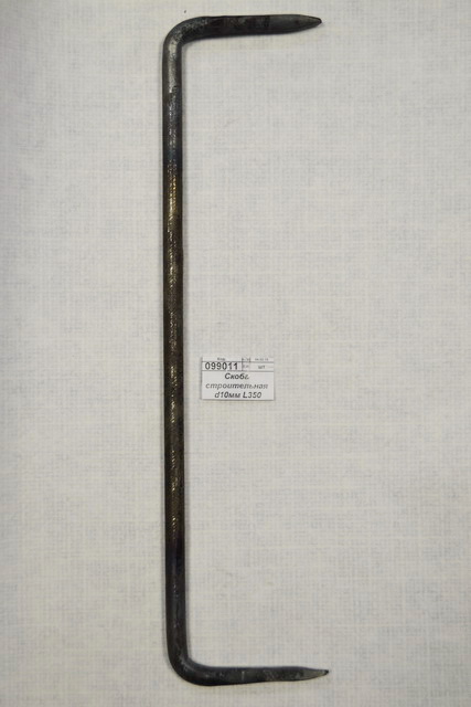 Скоба строительная 350х10 мм предназначена для укрепления венцов и всей стропильной системы при сборке деревянных домов. Скобы строительные применяются для соединения оцилиндрованных бревен, бруса.
