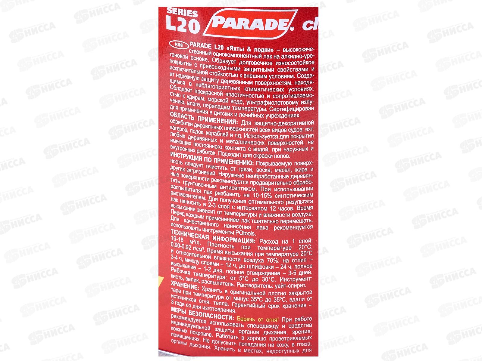 ЛАК яхтный алкидно-уретановый L20 PARADE матовый 0,75л*6 0373 ЛАКРА