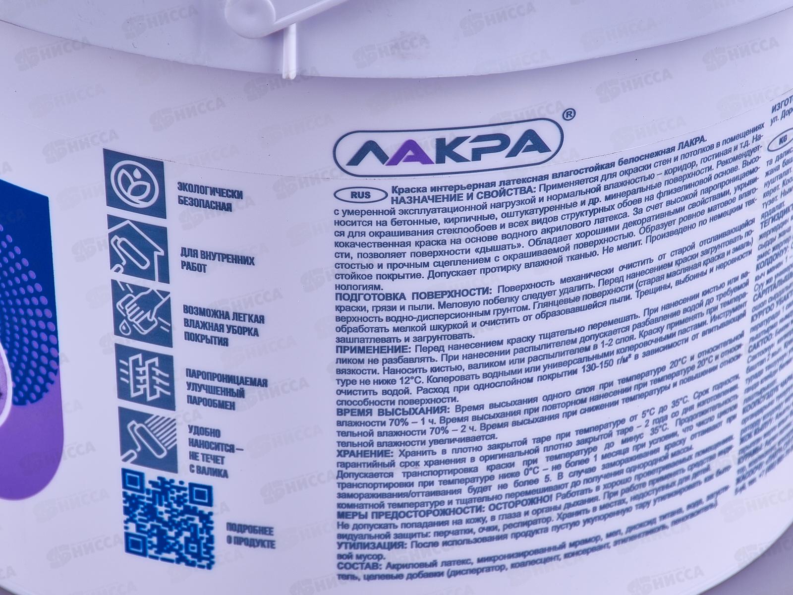 Краска интерьерная латексная влагостойкая белоснежная 3кг, Лакра, 8306476 *144