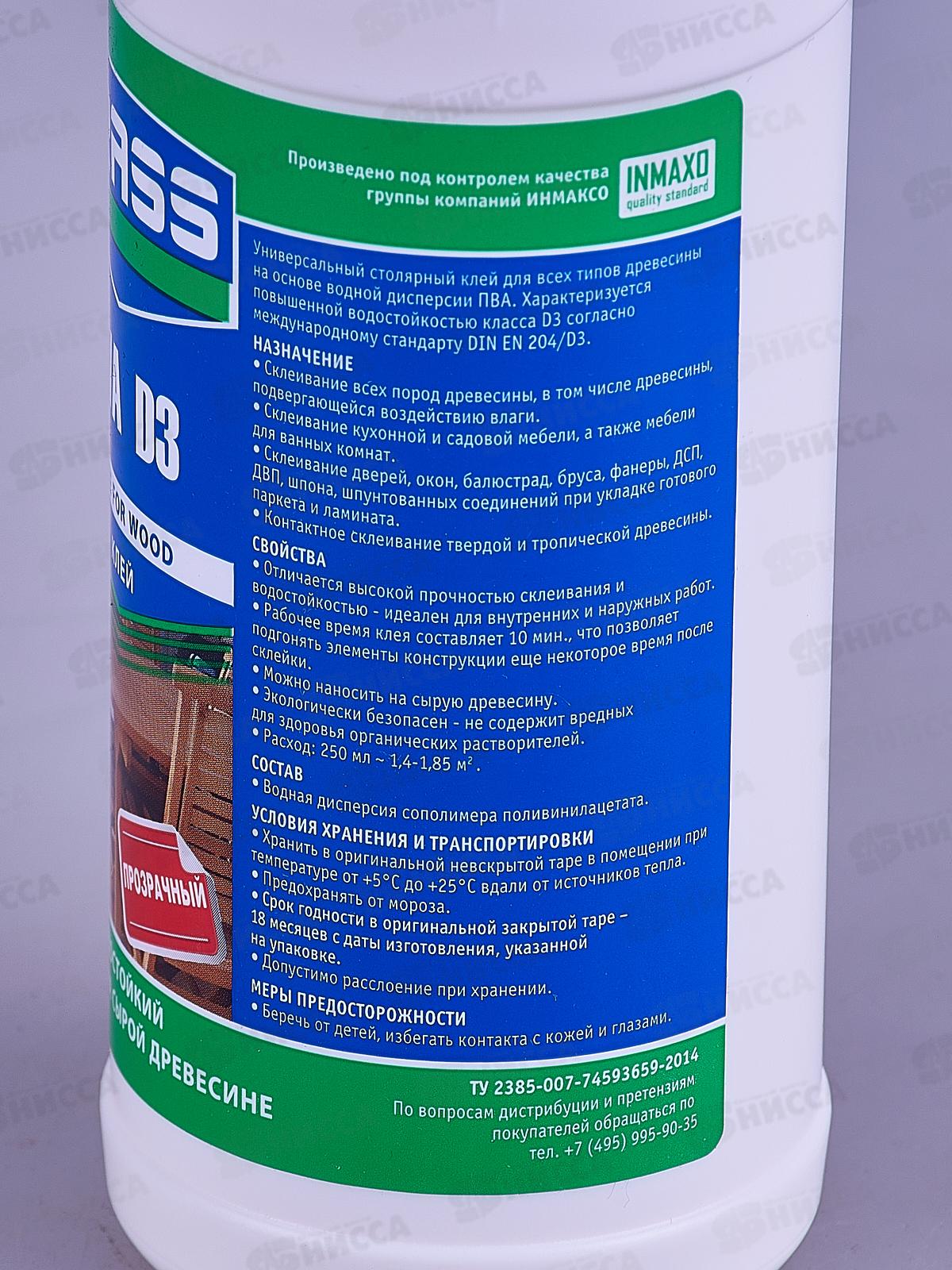 Клей KRASS водостойкий PVA D3 для древесины 0,25л *16