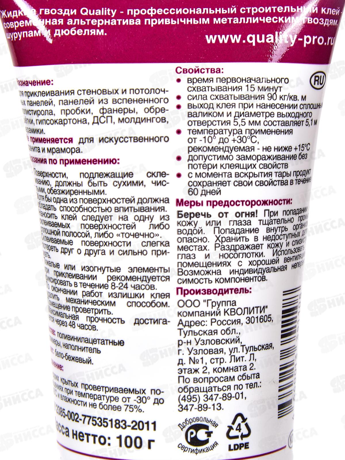 Жидкие гвозди КВОЛИТИ монтажный 100мл для панелей тюбик *24