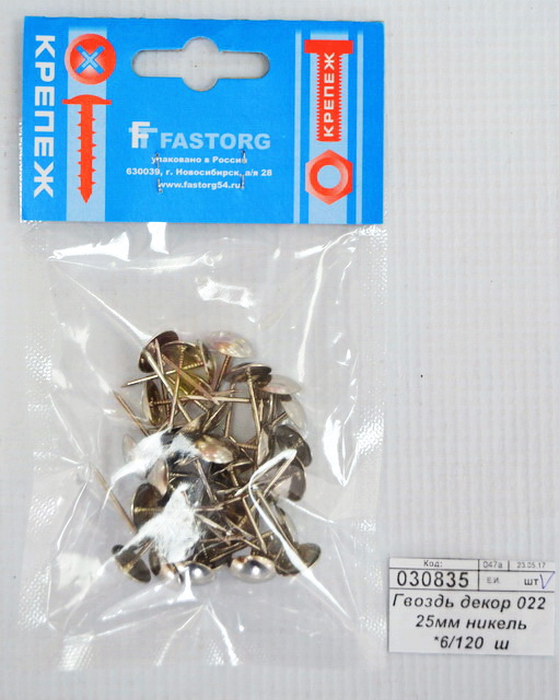 Гвоздь декор 022 25мм никель *6/120 ш