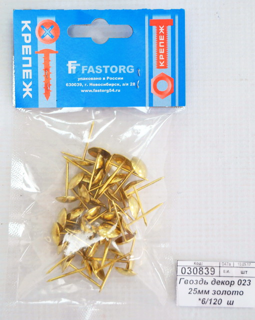 • Гвоздь декоративный 023  25мм золото *6/120  ш