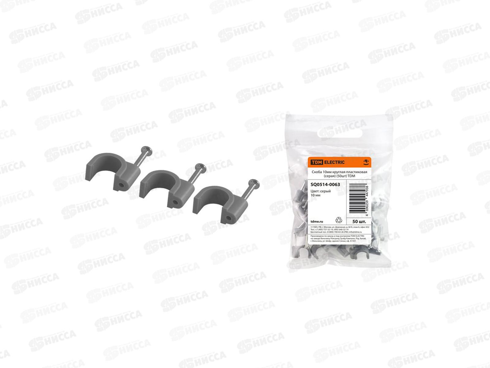 • Скоба круглая 10мм, пластиковая (50штук) серая, TDM, 0063