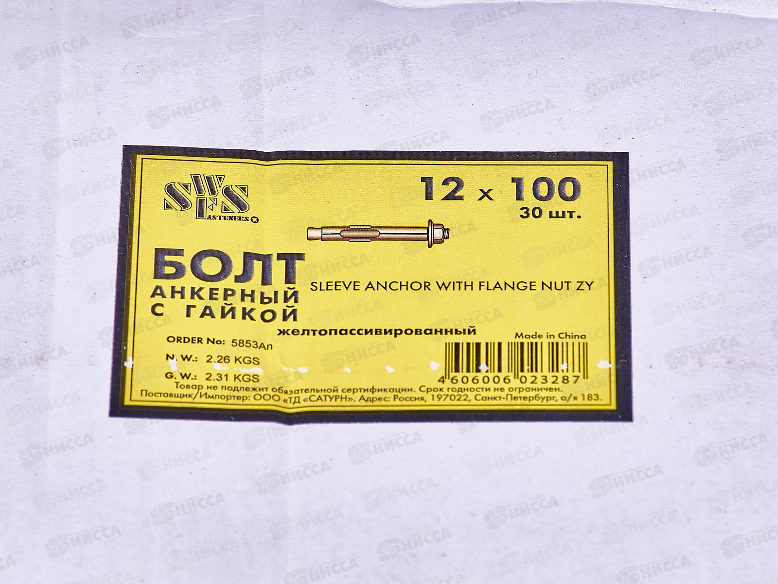 Анкерный болт с гайкой 12*100 30штук, СВФС