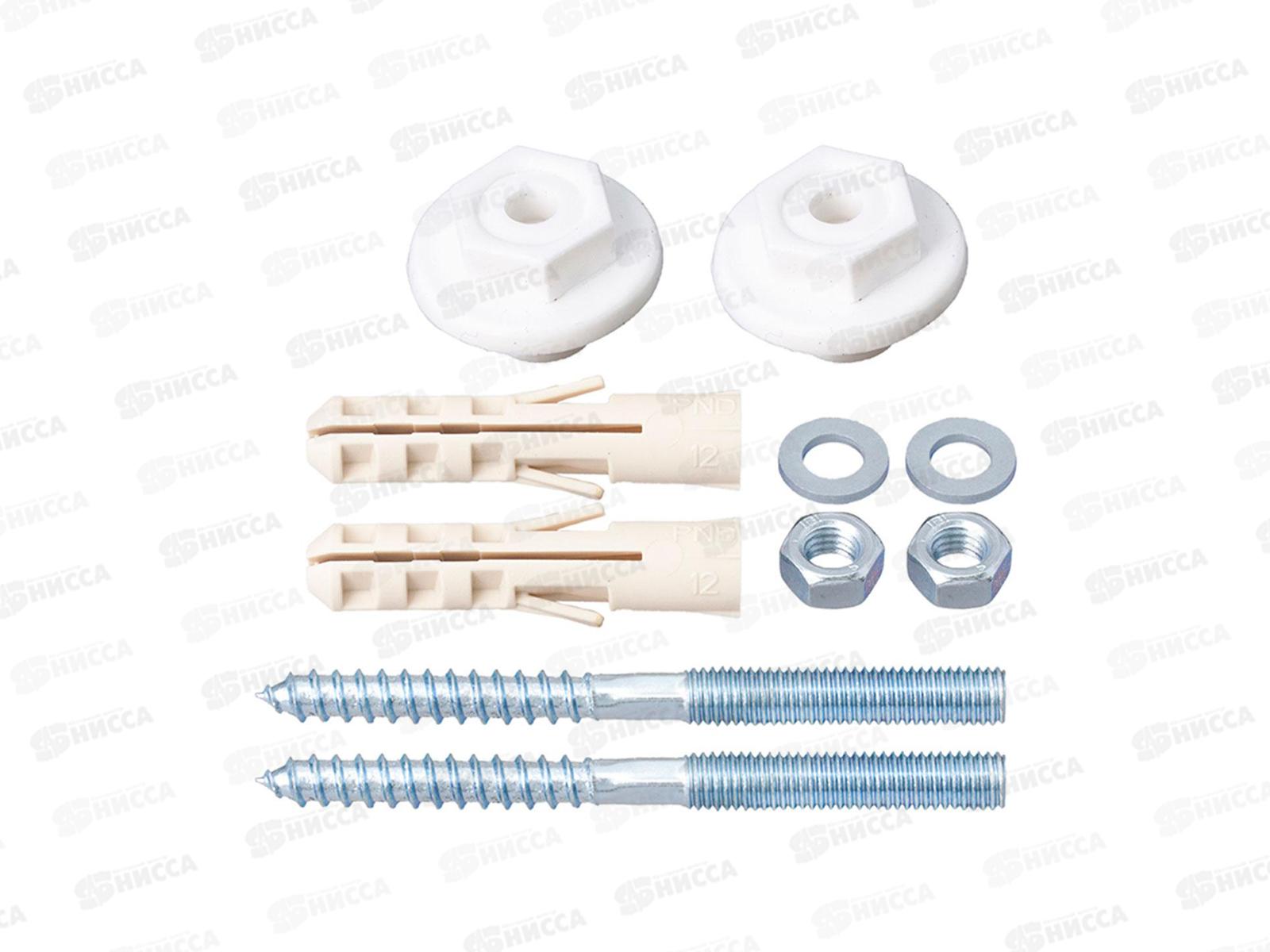 В комплект входит: шпилька сантехническая 8х100 (2шт), гайка М8 (2шт), шайба (2шт), дюбель нейлоновый 12х60 (2шт), заглушка пластиковая (2шт).