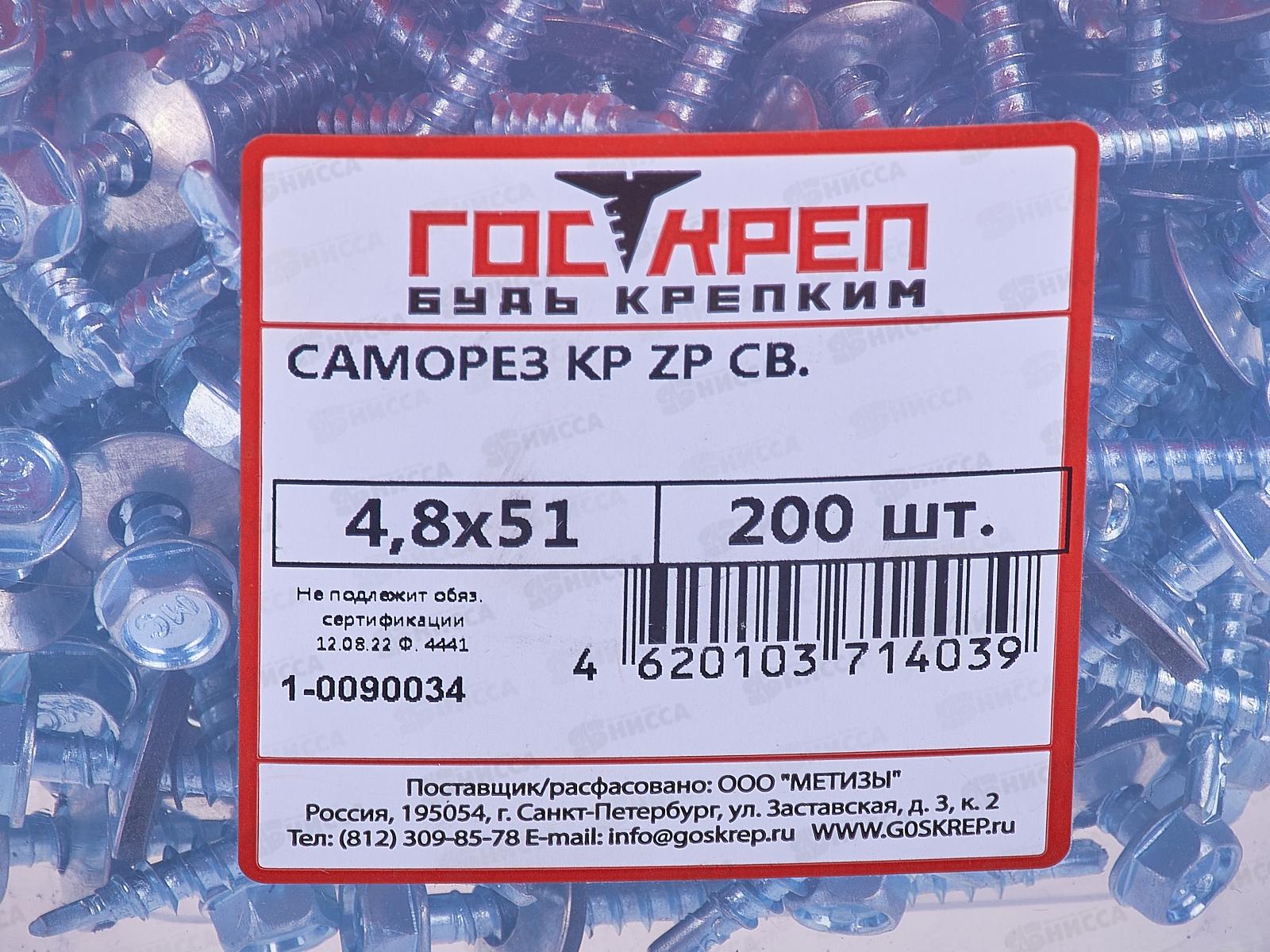 Саморез кровельный 4,8*51 (200шт) цинк, ГОСКРЕП конт.
