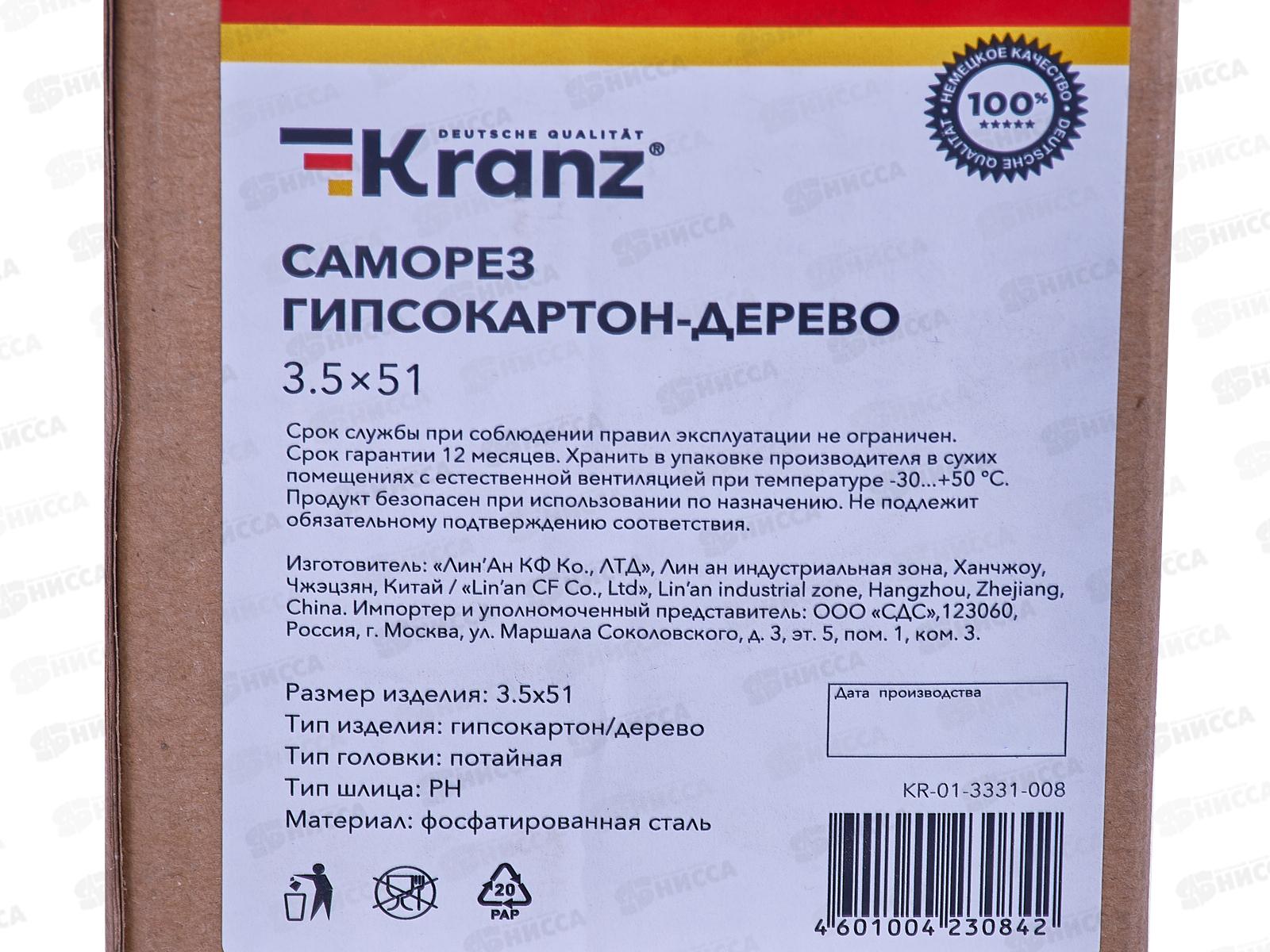 Саморез KRANZ гипсокартон-дерево 3,5х51, (200шт), KR-01-3331-008