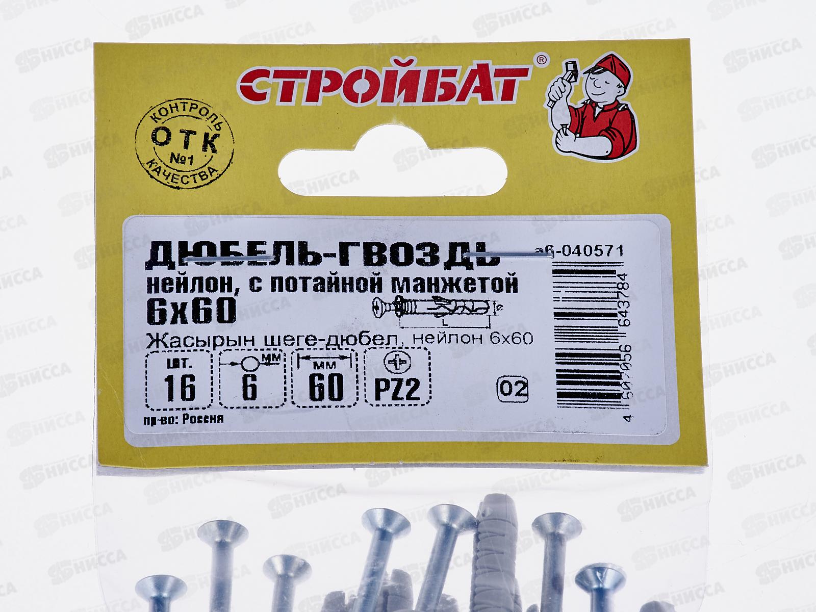 Дюбель-гвоздь нейлон потайной манжет 6x60мм (16 шт), 040571