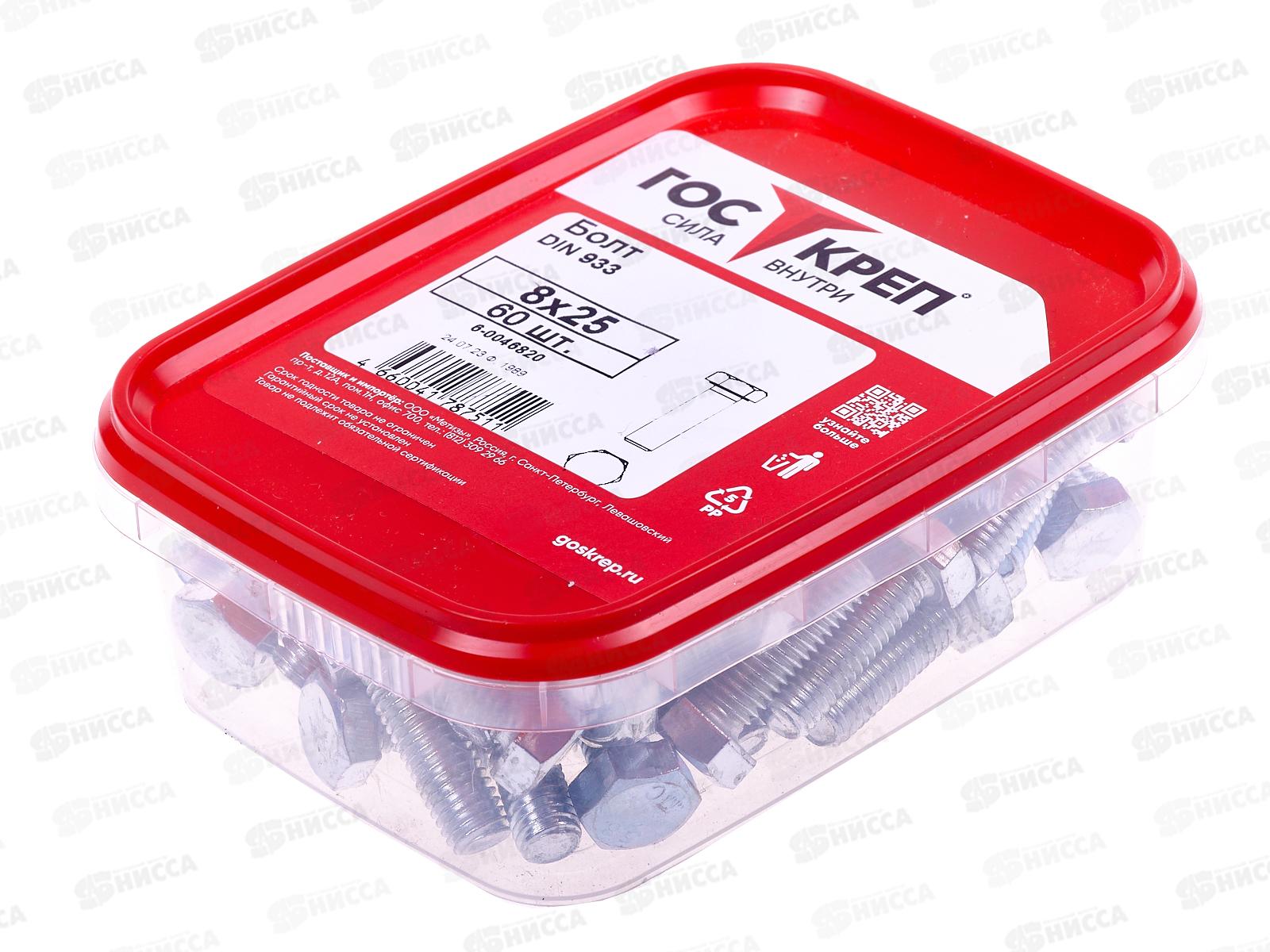 Болт (DIN933) М8*25 цинк (60шт) контейнер Госкреп