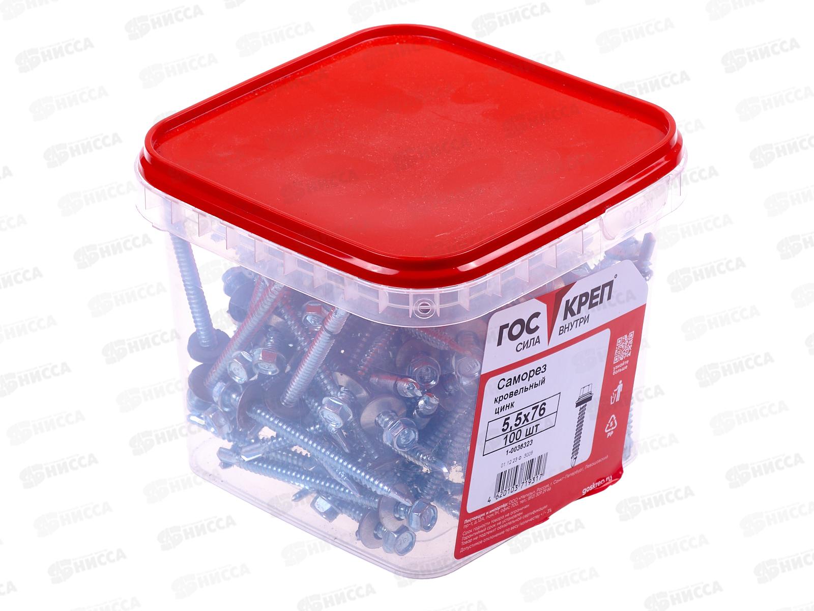 Саморез кровельный 5,5*76 (100шт) цинк, ГОСКРЕП контейнер *6