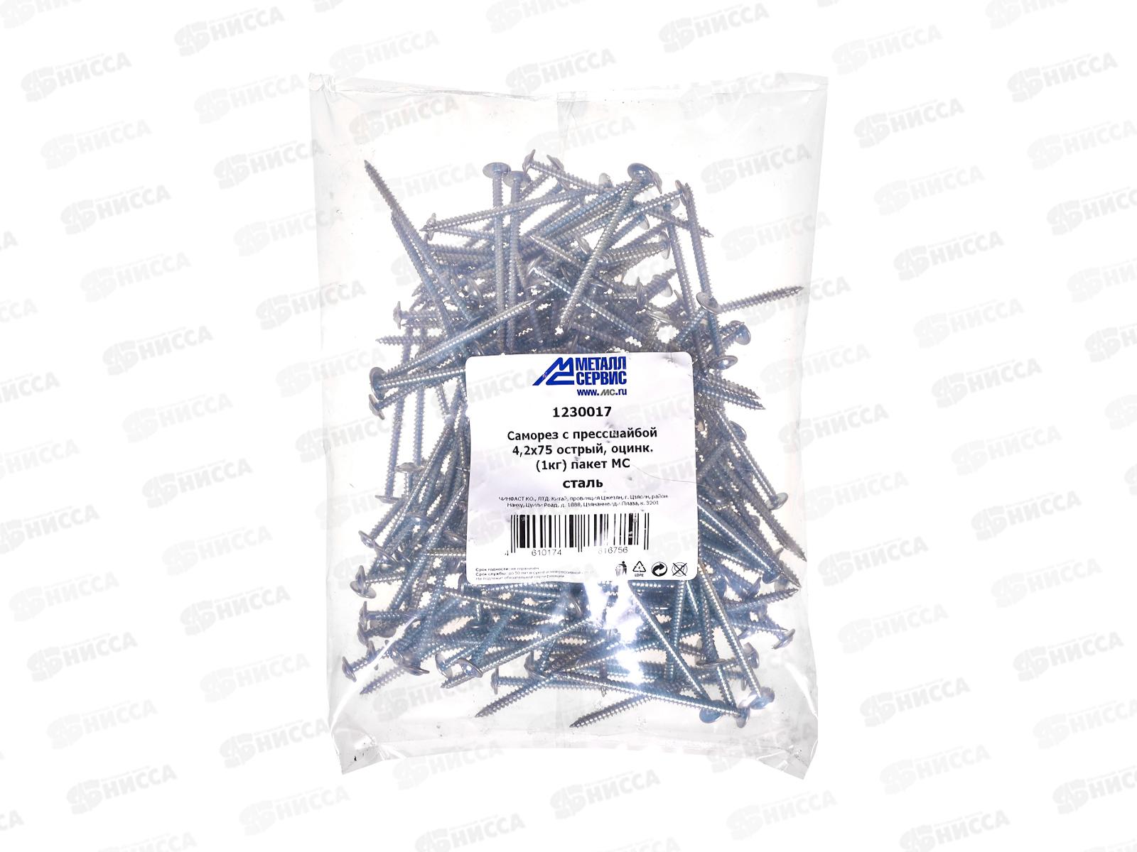 Саморез с прессшайбой 4.2*75 (1кг) острый, пакет *10