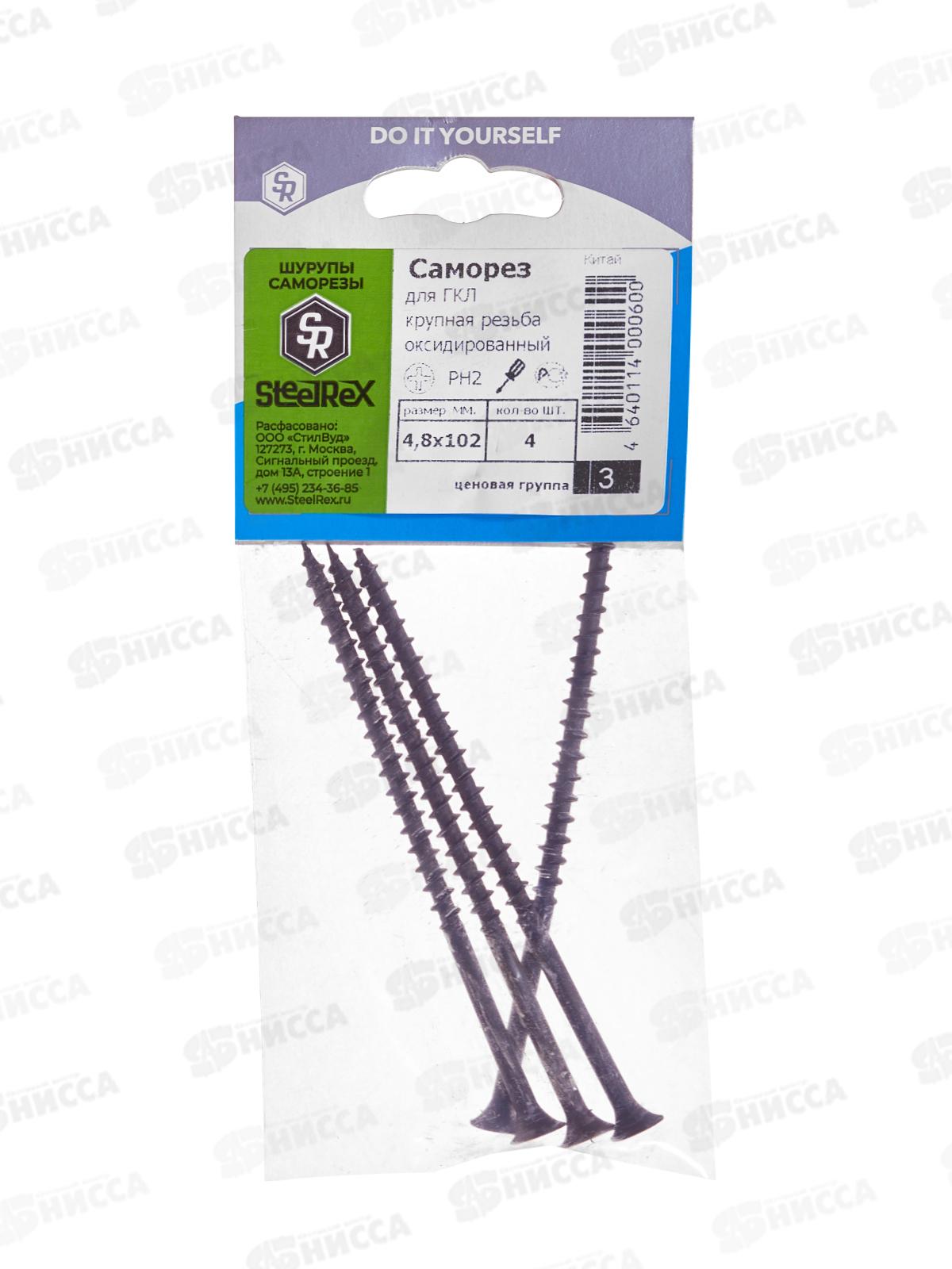 Саморез для ГКЛ крупная резьба, оксид 4,8х102 4шт SR