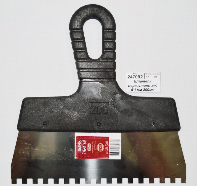 Шпатель нержавеющая сталь зуб 6*6мм 200мм черная ручка 311-2200 *20