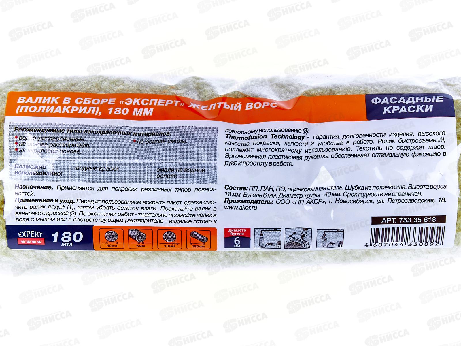 Валик 180мм, D6мм, ЭКСПЕРТ Желтый ворс, 402 *35