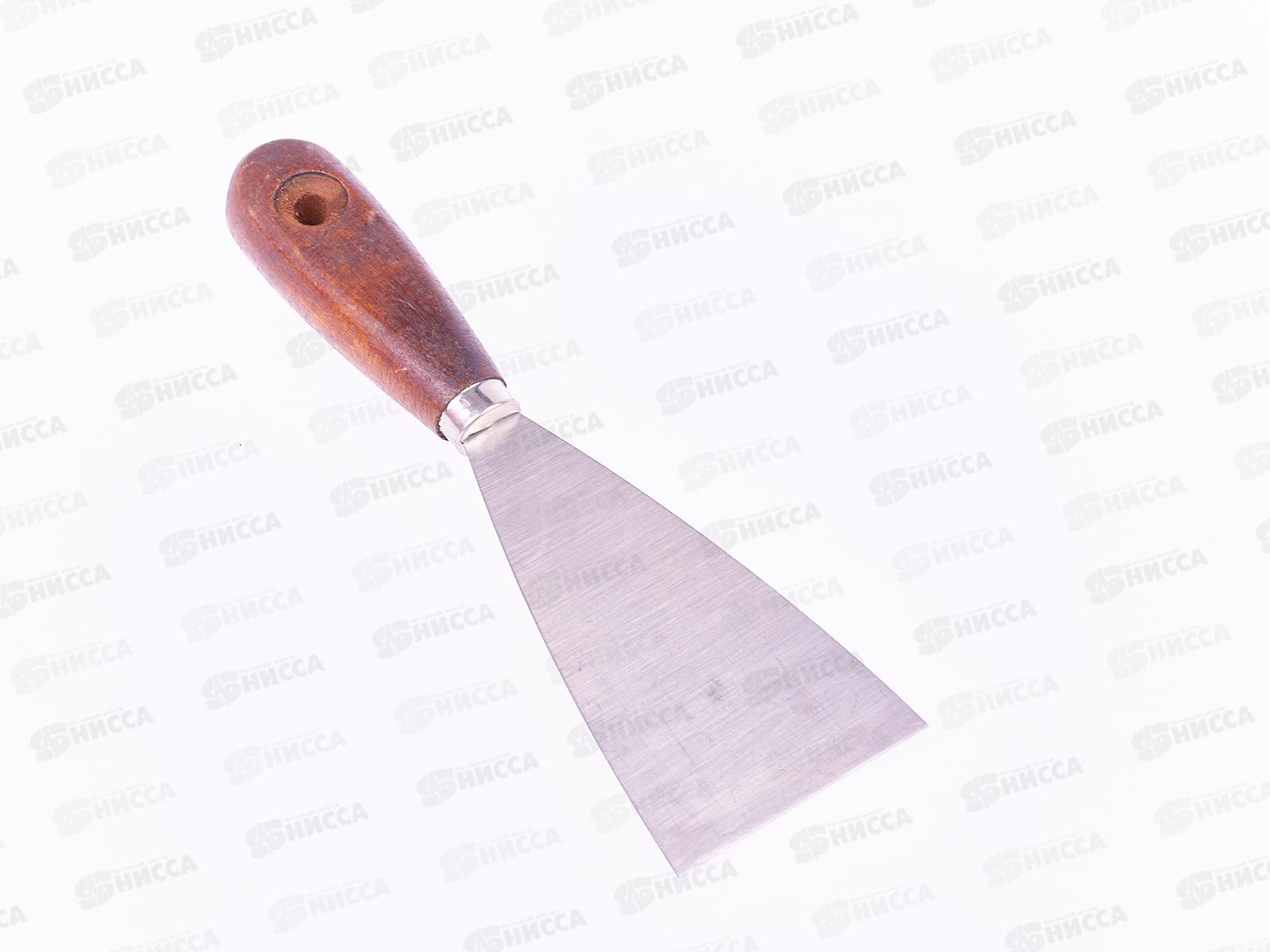 Применяется для нанесения на обрабатываемую поверхность и последующего выравнивания шпатлевки и других отделочных растворов. Профилированное полотно шпателя изготовлено из углеродистой закаленной стали. Деревянная рукоятка надежно скреплена с полотном и оснащена отверстием для подвески.