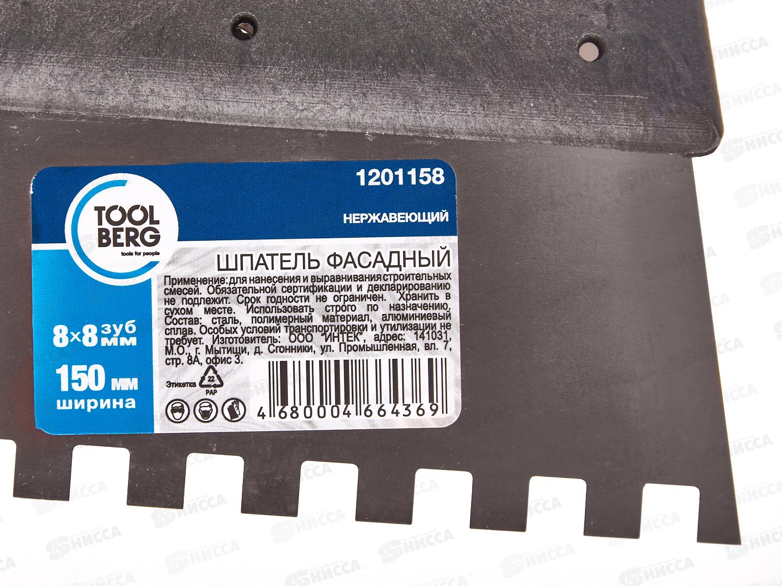 Шпатель фасадный нержавеющий 150мм зуб 8*8 пластиковой ручкой, 1201158 *30