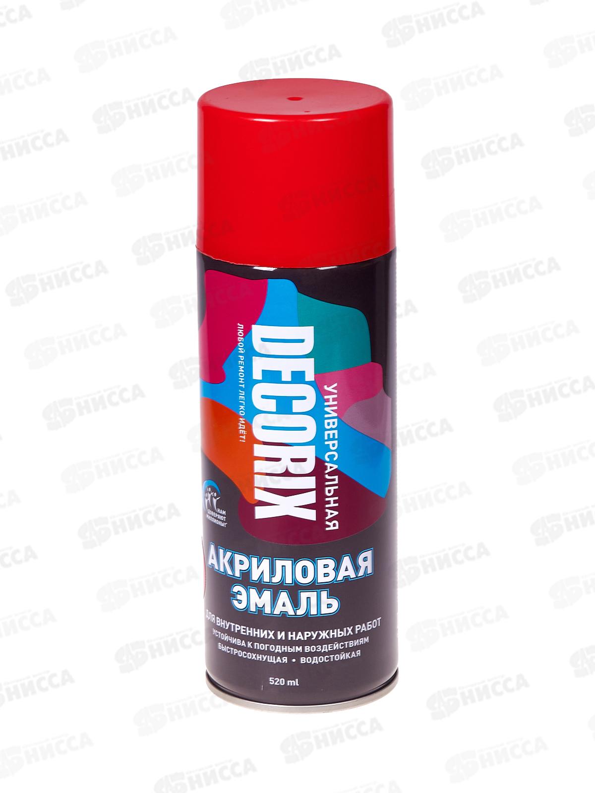 Аэрозольная эмаль акриловая универсальная DECORIX 520мл, цвет-красный *12