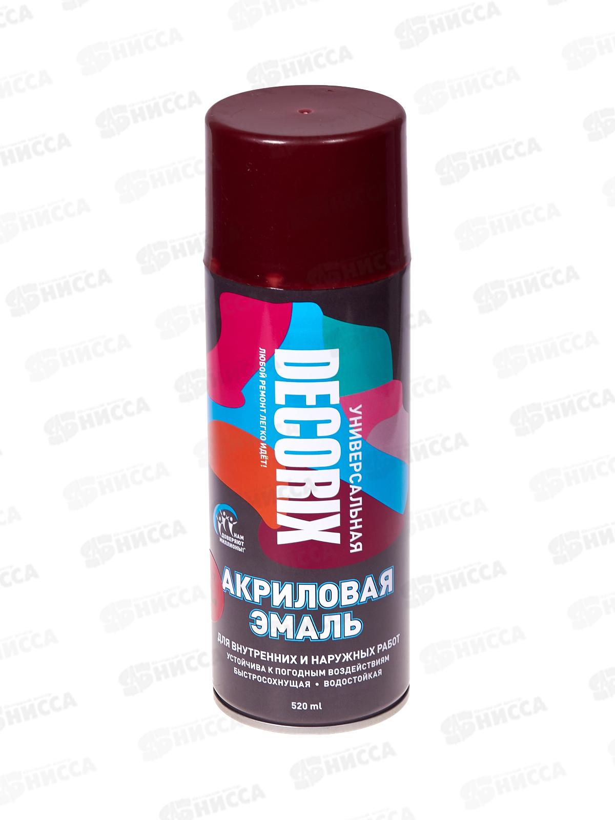 Аэрозольная эмаль акриловая универсальная DECORIX 520мл, цвет-ярко-красный *12